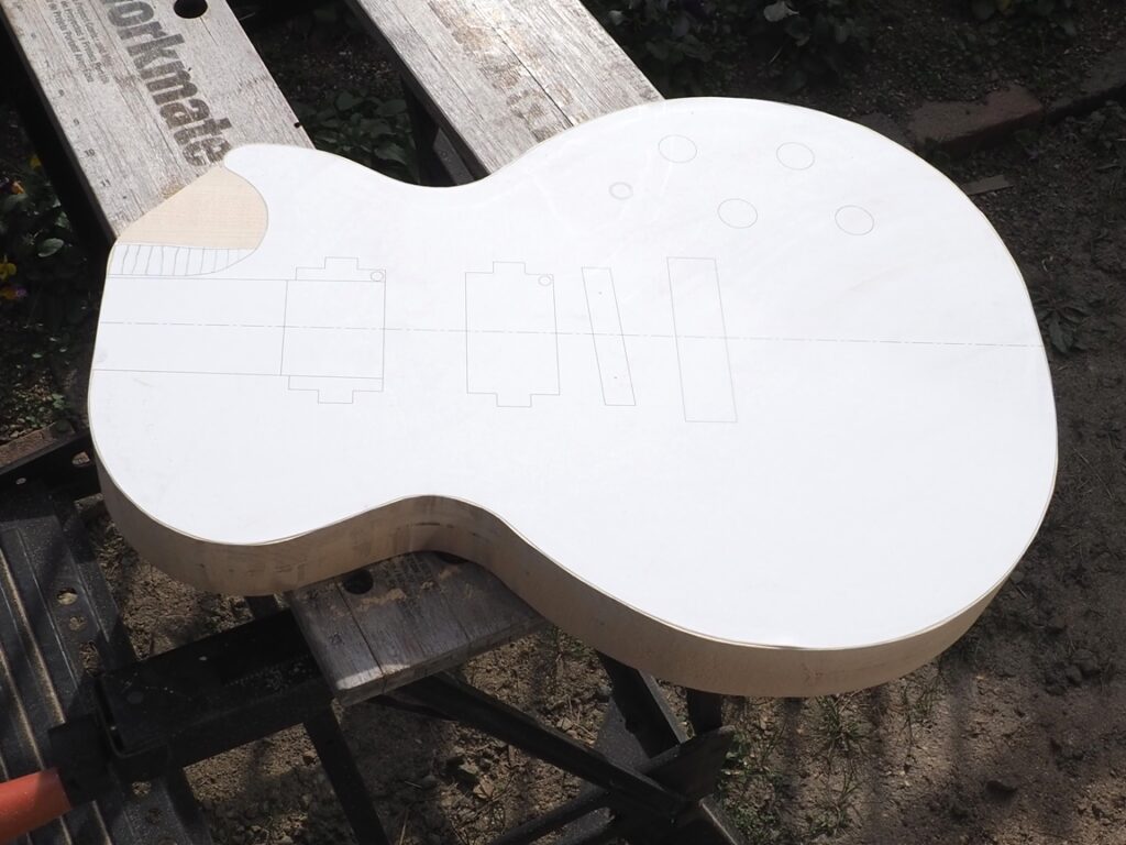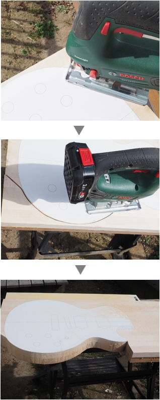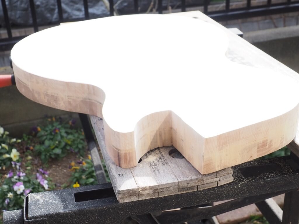 貼り合わせたボディ用木材を形状にカットします。