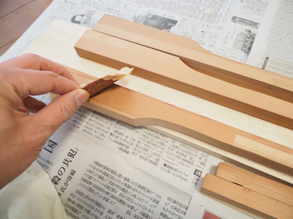 接着面に紙やすりで傷をつけておきます(目が粗いもの:#80を使用しました)。