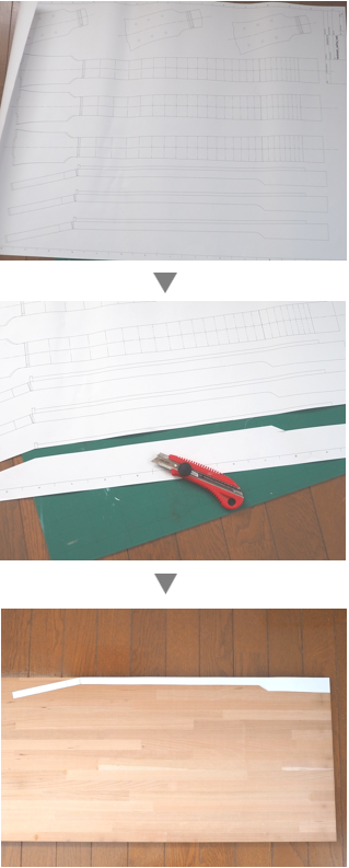 設計図を木材に貼り付ける
