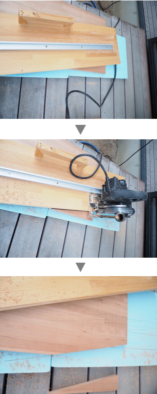 丸ノコをガイドに沿って走らせて・・・