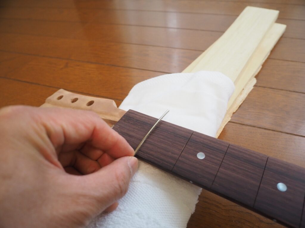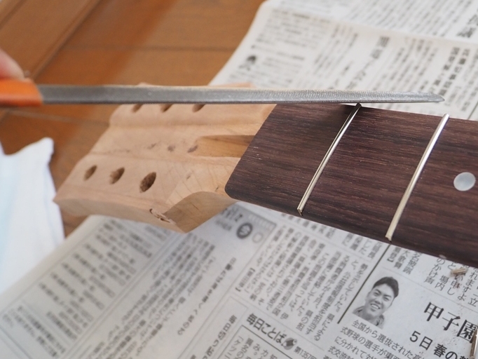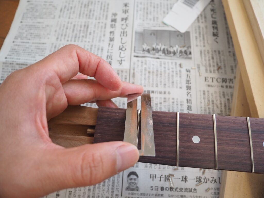 地味な作業ですが、演奏性に関わる重要な工程ですので音楽でも聴きながら辛抱強く加工してください。