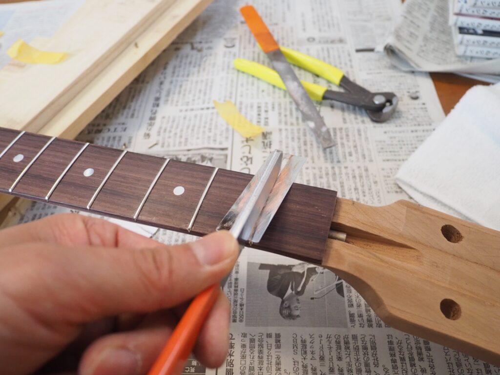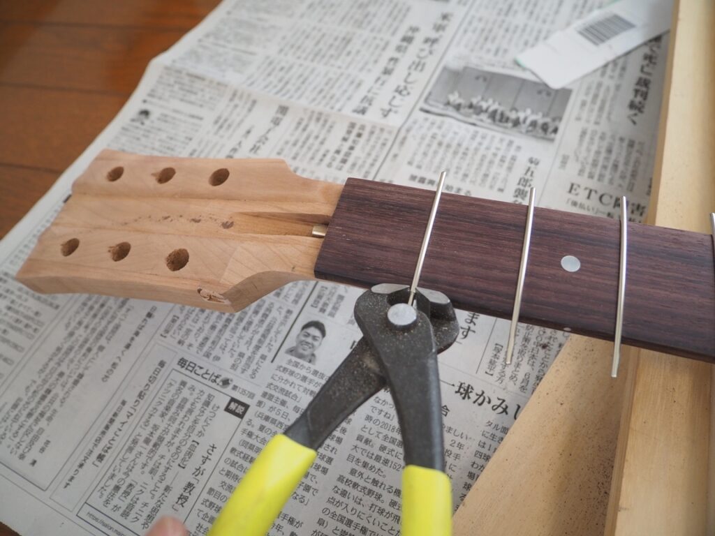 ※きちんとフレットの根元まで打ち込めていることを確認します