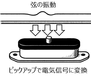 弦の振動を電気信号に変える部品です。