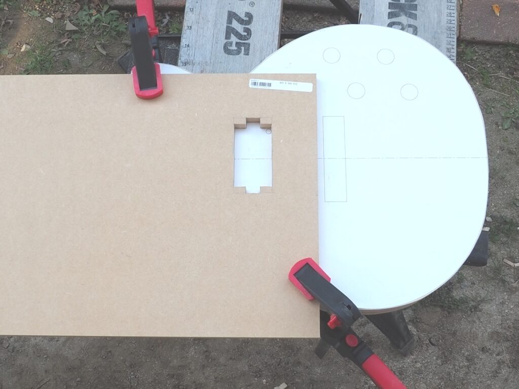 1. 最初にMDFボードなどの加工しやすい木材に「理想の穴の形」の型板を作る