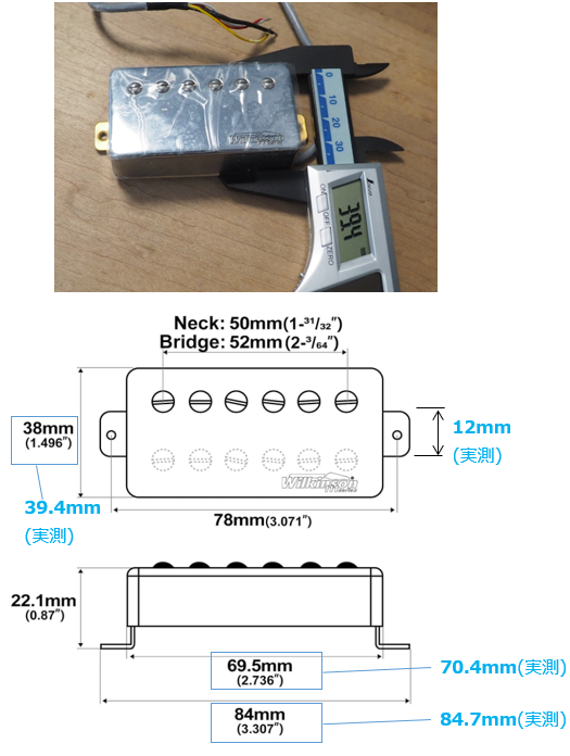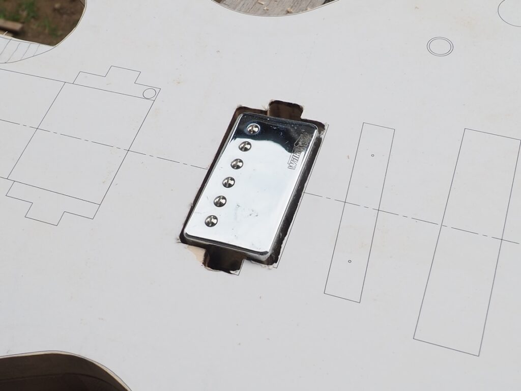 ボディにピックアップ収納用の穴を作るので、ピックアップのサイズを確認します。