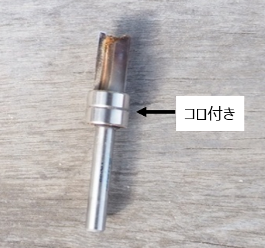 トリマーのビットは次の写真のようにコロ付きのものを使用します。(径は8mm)