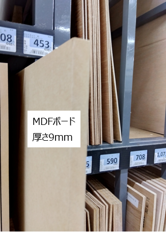 ホームセンターで厚さ9mmのものを購入しました。(453円)